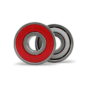 Los rodamientos Genuine Parts GP-R para skateboard cuentan con un protector exterior de laberinto removible y sin contacto 🛡️, sin protector en la parte trasera, pistas de acero micro-pulidas ✨, una jaula reforzada personalizada ⚙️ y lubricante de aceite ligero 💧.